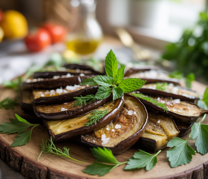 구운 가지 샐러드: 슬라이스한 가지를 에어프라이어에 구운 후 올리브유와 발사믹 식초, 채소를 곁들여 샐러드로 즐기면 가볍고 건강한 한 끼가 됩니다.