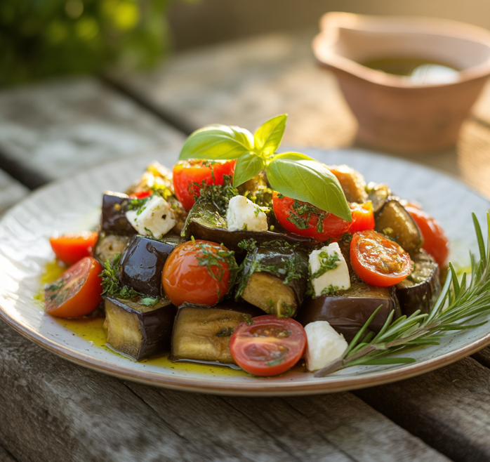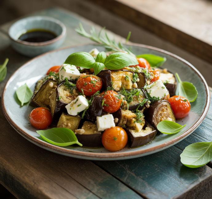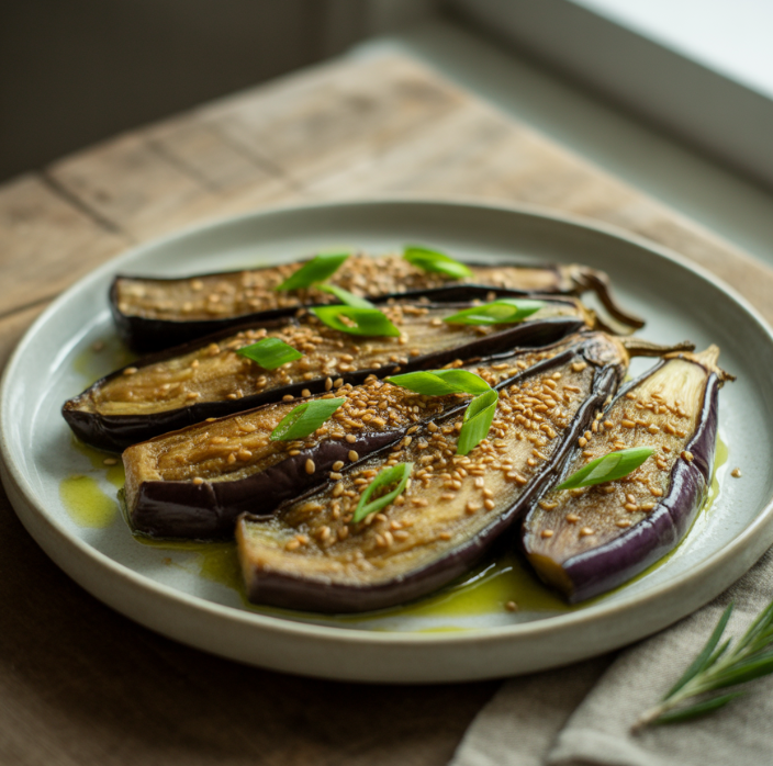 구운 가지 샐러드: 슬라이스한 가지를 에어프라이어에 구운 후 올리브유와 발사믹 식초, 채소를 곁들여 샐러드로 즐기면 가볍고 건강한 한 끼가 됩니다.