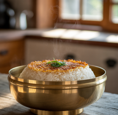 👉 밥보다 수분 함량이 적고 살짝 눌러 구워지면서 고소한 풍미가 더해집니다.