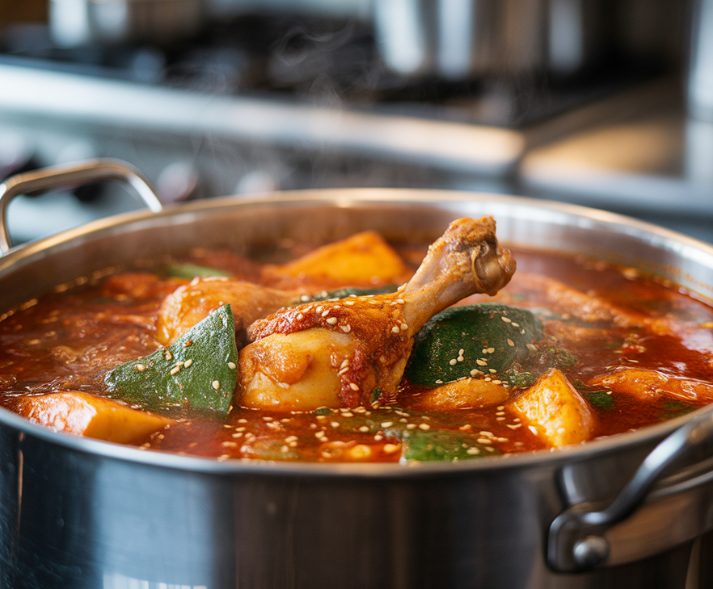 → 너무 오래 끓이지 말고, 닭이 익으면 불을 줄여 은근히 졸이듯 끓여주세요.