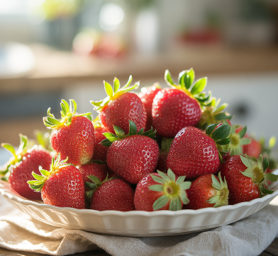 딸기는 표면에 잔털이 많아 농약이나 세균이 남을 수 있습니다. 반드시 흐르는 물에 여러 번 세척하고, 소금물이나 식초물에 잠시 담갔다가 헹궈 먹는 것이 안전합니다.