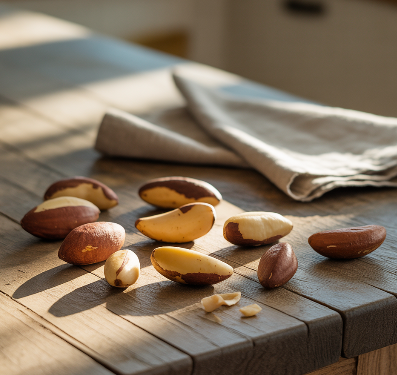 특히 셀레늄 함유량이 압도적으로 많아 브라질너트는 다른 어떤 견과류보다 항산화와 면역력 강화 측면에서 강점을 갖습니다.