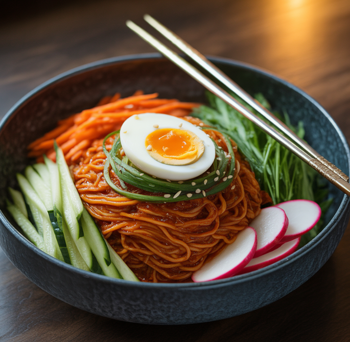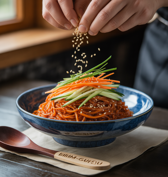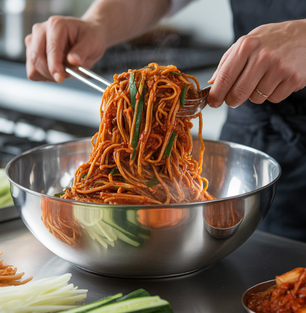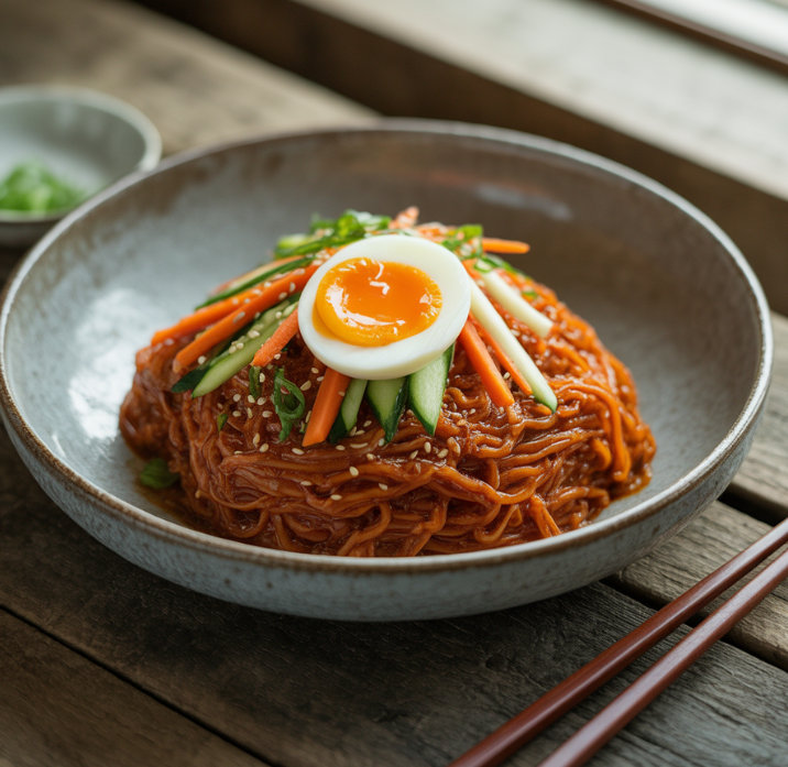 더운 여름날 입맛이 떨어질 때, 혹은 간단하지만 특별한 한 끼가 필요할 때 떠오르는 음식이 있습니다. 바로 비빔국수입니다. 매콤하면서도 새콤달콤한 양념이 탱탱한 면발에 스며들어, 한 젓가락 집어 올리면 숟가락을 놓을 수 없게 되는 마성의 음식이죠.