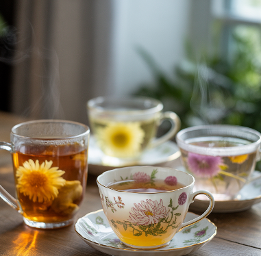 국화에는 항산화 성분과 항염 성분이 있어 알레르기성 비염으로 인한 눈·코 불편함 완화에 좋습니다.