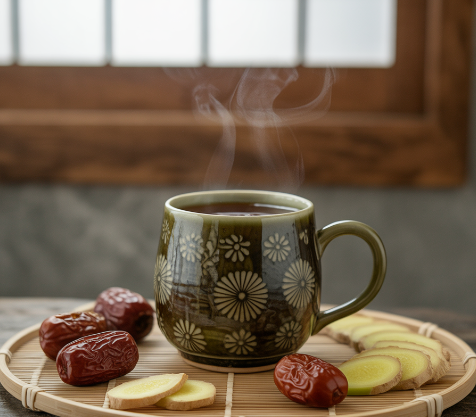 생강은 오래전부터 한의학에서 ‘몸을 따뜻하게 하는 약재’로 쓰여왔습니다. 혈관을 확장시키고 혈류를 원활하게 하여 손발이 찬 사람에게 큰 도움을 줍니다. 대추 또한 혈액을 보충하고 기운을 북돋아주는 효능이 있어, 두 재료가 함께 어우러지면 추운 계절에 체온 유지와 혈액순환 개선에 매우 효과적입니다.