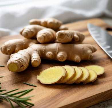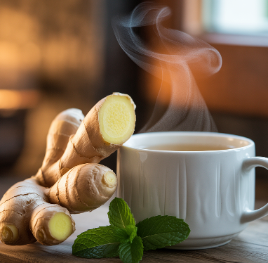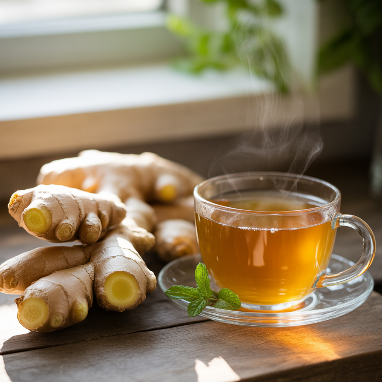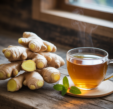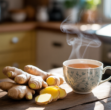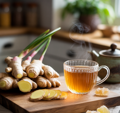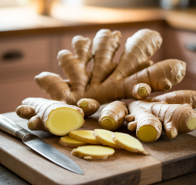 생강은 위액 분비를 돕고 장 운동을 촉진해 소화불량, 더부룩함, 메스꺼움 등을 개선합니다. 특히 멀미 방지 효과도 있어 여행 전 생강차를 마시면 속이 편안해질 수 있습니다.