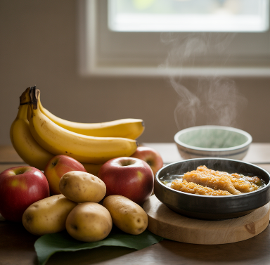 설사 관리의 핵심은 수분·전해질 보충과 소화 잘 되는 음식 섭취이며, 바나나·사과·감자·누룽지탕 같은 음식이 회복에 도움을 줍니다. 반대로 기름진 음식, 카페인, 알코올은 피해야 합니다.