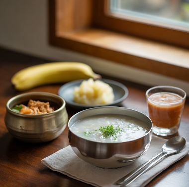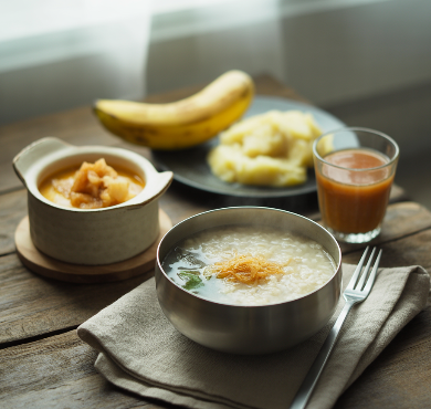 흰죽, 누룽지탕: 자극이 적고 위에 부담을 주지 않음