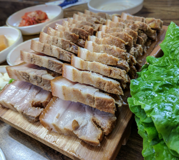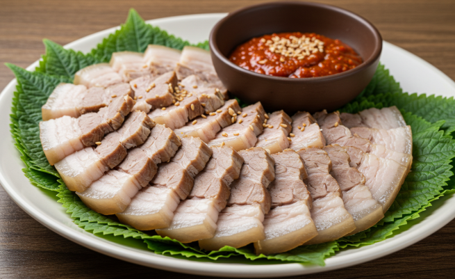 새우젓: 고기 특유의 기름진 맛을 깔끔하게 잡아주는 전통 조합.
