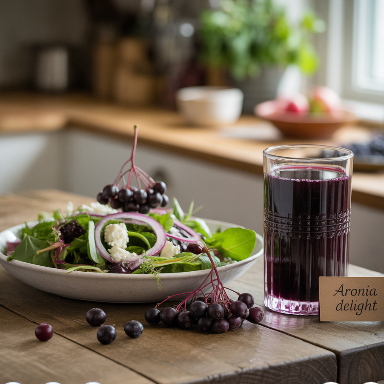 아로니아의 대표적인 장점은 바로 풍부한 안토시아닌과 폴리페놀 성분입니다. 이들은 활성산소를 제거해 세포 손상을 줄이고, 노화를 늦추며 각종 성인병 예방에 도움을 줍니다.