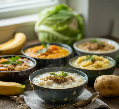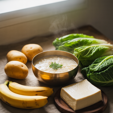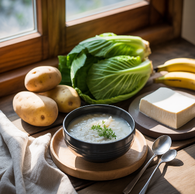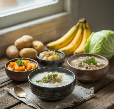 - 흰쌀죽, 호박죽, 감자죽, 닭죽 등 부드럽고 소화가 잘 되는 음식은 위에 부담을 주지 않습니다.