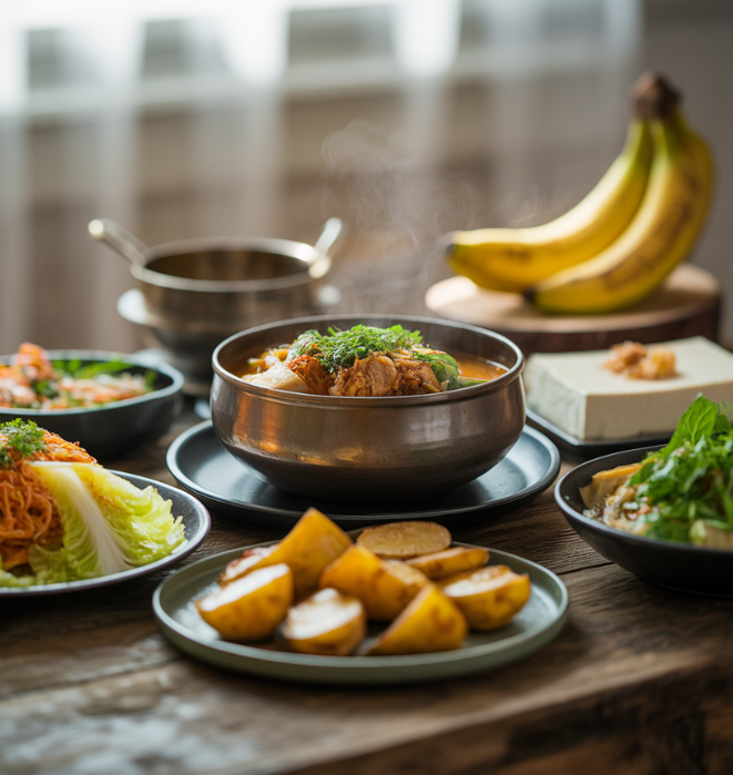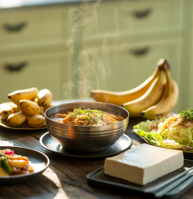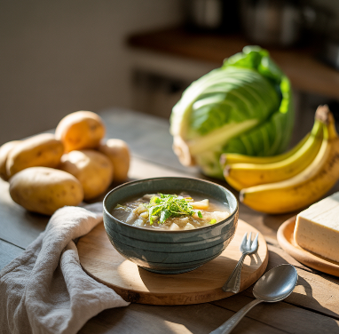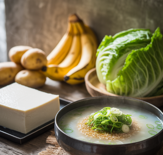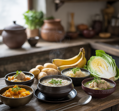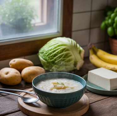 - 수프 형태로 끓인 채소나 곡물도 좋은 대체식입니다.