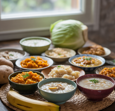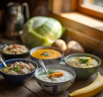 - 흰쌀죽, 호박죽, 감자죽, 닭죽 등 부드럽고 소화가 잘 되는 음식은 위에 부담을 주지 않습니다.
