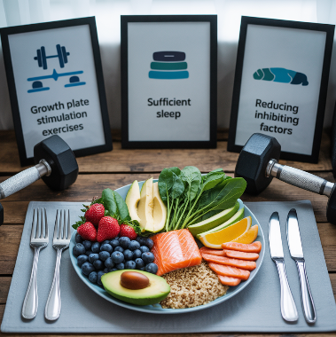 단백질: 성장호르몬 분비 및 근육·뼈 형성 → 달걀, 두부, 생선, 닭가슴살